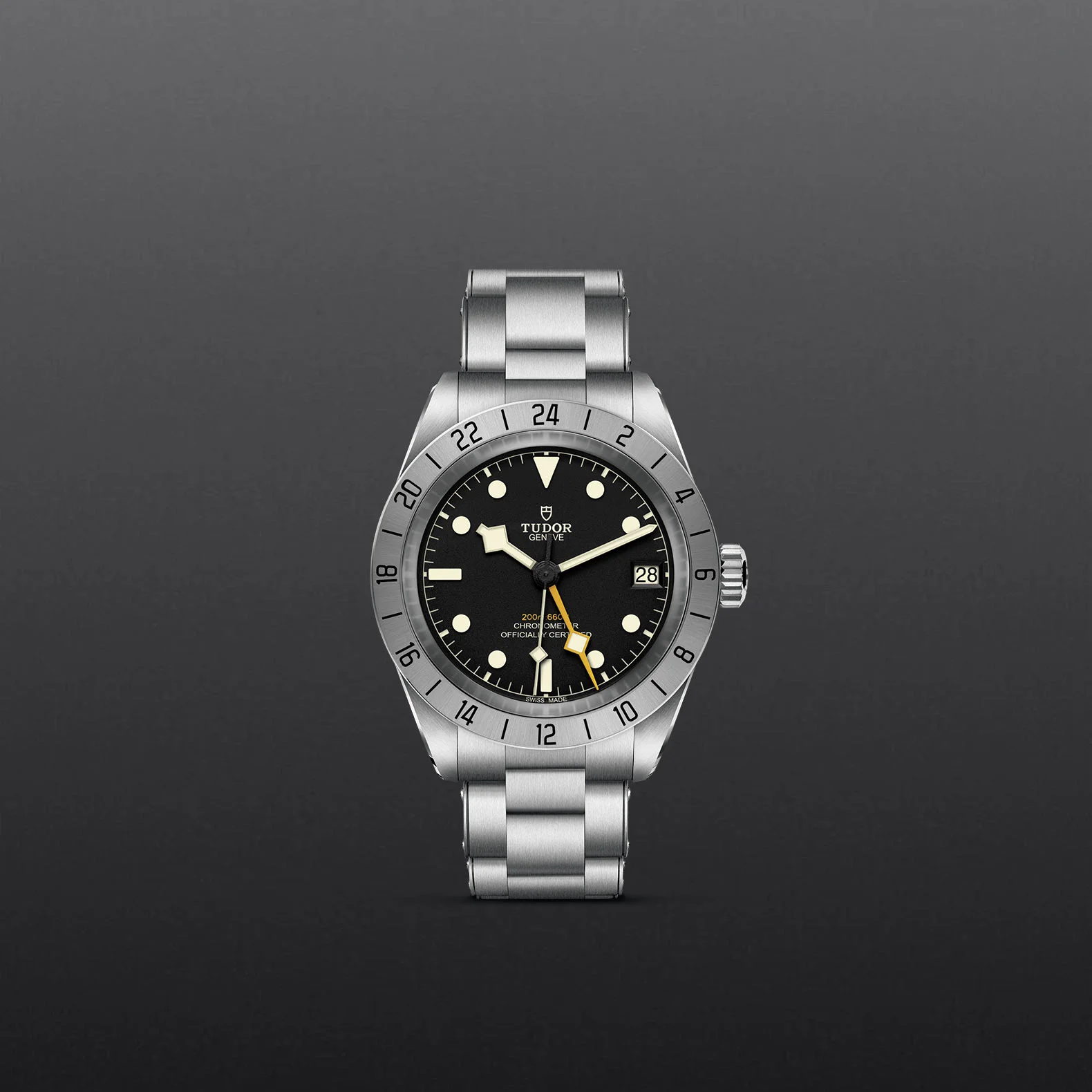 The Adventurers' Black Bay, the Black Bay Pro is a technical model with a whole new aesthetic: a tool-watch designed for professional use. With a 39mm case and a fixed steel bezel the watch boasts a Manufacture Calibre with built-in GMT function.