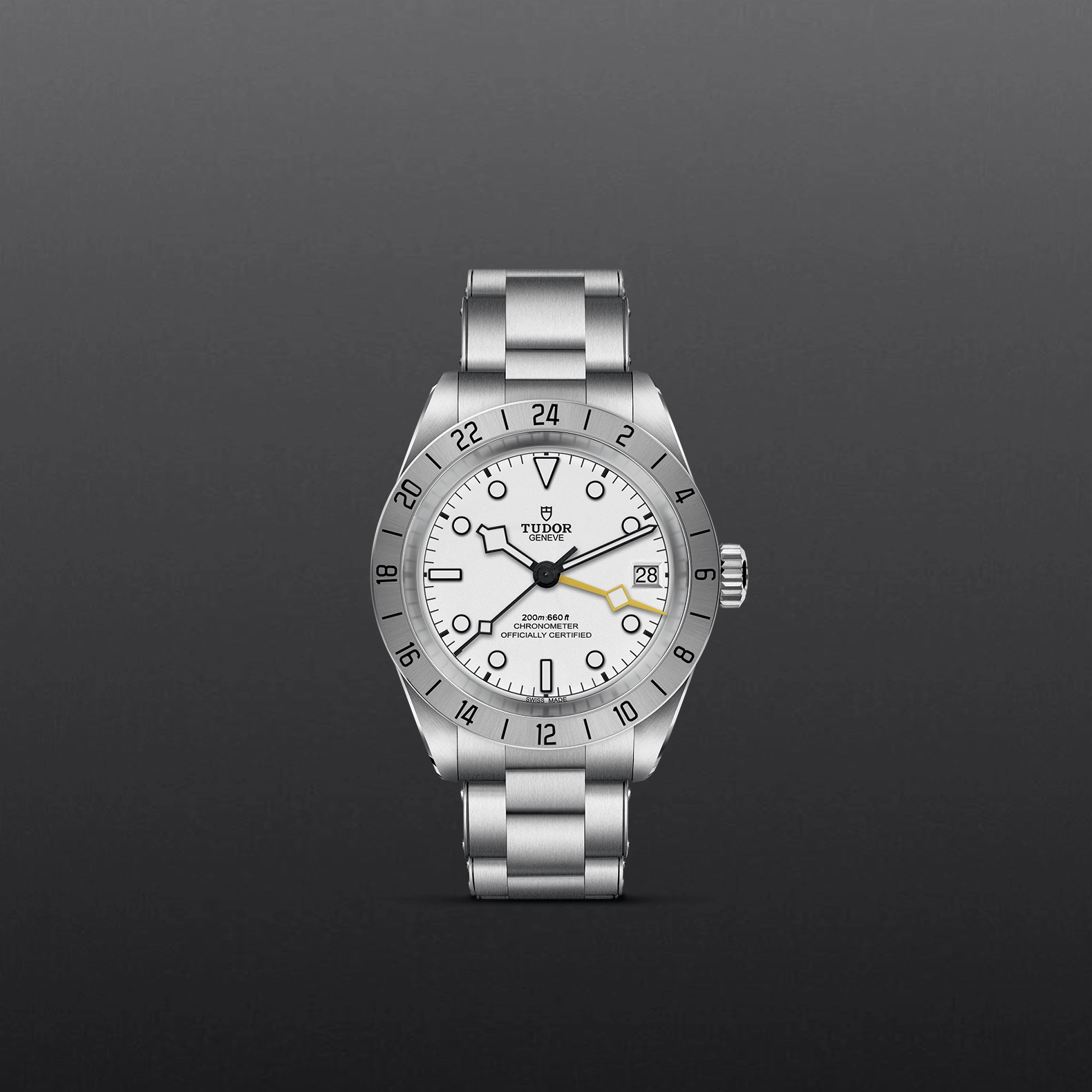 24-hour graduated fixed bezel in satin-brushed steel