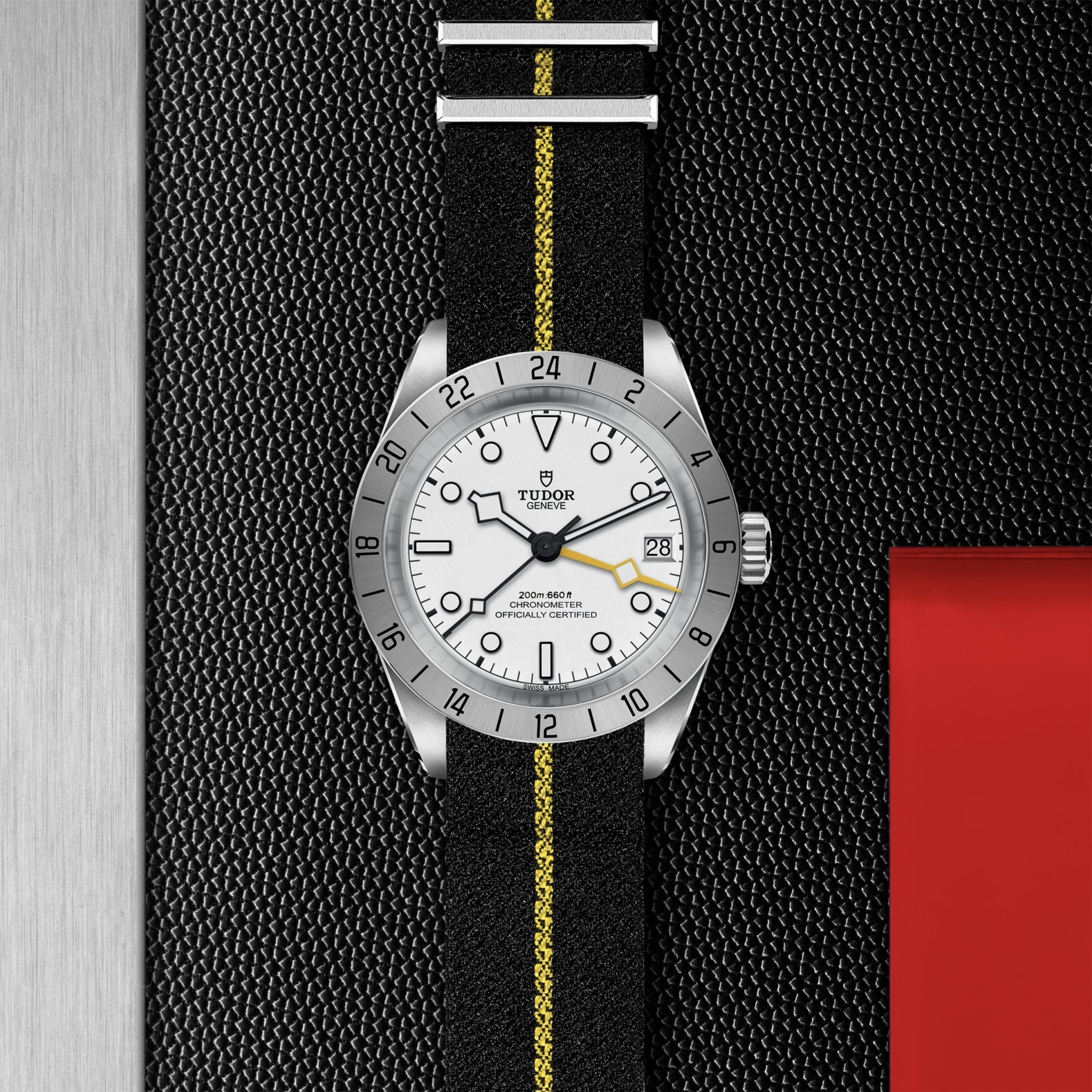 Building on the Black Bay Pro’s robust reputation, this new version retains the 39mm diameter case, fixed steel bezel and Manufacture Calibre with built-in GMT function. So what’s new? A distinct new opaline dial with visual touches that make it extremely legible.